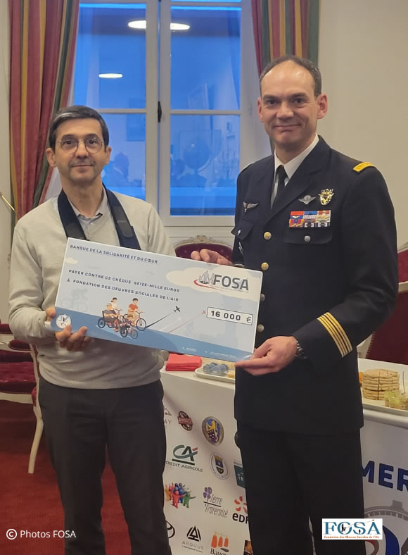 Ainsi, les deux associations Entraide Marine et Terre Fraternité-ADO ainsi que la Fondation des Œuvres Sociales de l’Air (FOSA) se sont chacune vu remettre un généreux chèque de 16 000€. L’association « Chez nous on SED » également présente a reçu un chèque à cette occasion.