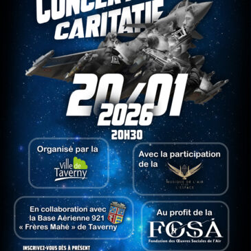 « Vous souhaitez passer une soirée musicale tout en soutenant une belle cause ? La ville de Taverny en collaboration avec la Base Aérienne 921 organise à l’occasion des 90 ans de la Musique de l’Air et de l’Espace un concert caritatif au profit de la Fondation des Œuvres Sociales de l’Air (FOSA).